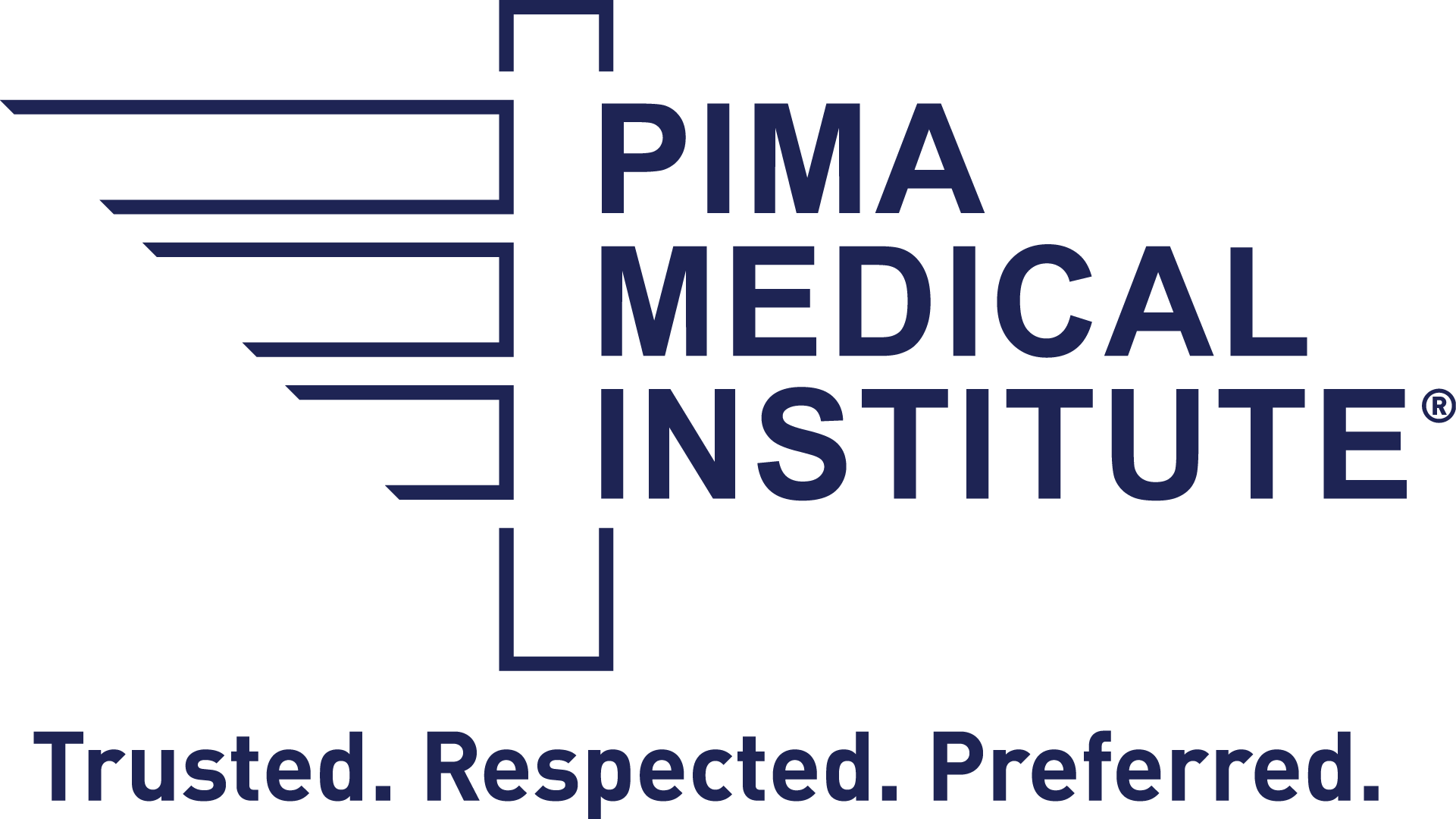 The Pima Medical Institute Logo with the tagline , trusted, respected, preferred underneath
